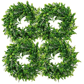 LSKYTOP 4 Pcs Boxwood Wreath - Artificial Greenery for All Decor Needs