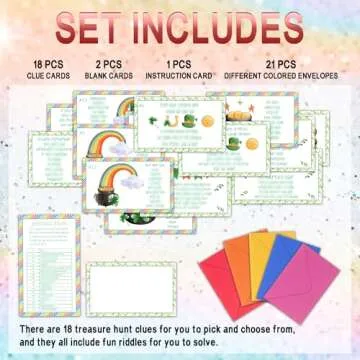 ltazhyi St. Patrick's Day Treasure Hunt Clue Cards, Luck Shamrock Decor Scavenger Hunt Game, Set of 21 Cards and 21 Envelopes, Spring Holiday Activity Celebration Saint Patrick's Day Party Game
