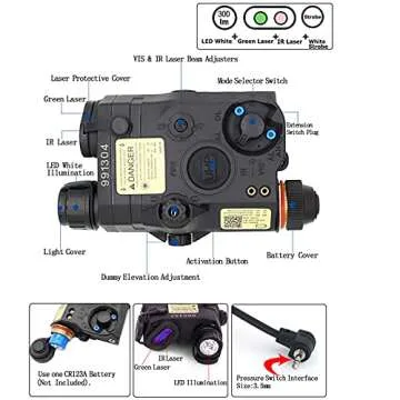 LThyzszb Airsoft PEQ Box PEQ 15 Visable Green Laser Sight & IR Laser & LED Flashlight with Strobe 300 Lumens for Airsoft AEG (Black)