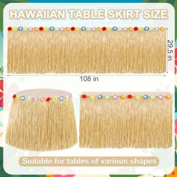 Luau Party Decorations, 2PCS Gold Hawaiian Themed Table Skirt Party Decorations, Flower 108 X 29.5" Grass Skirts Luau Party Favors, Luau Table Skirt for Summer Tropical Hula Parties Decor Accessories