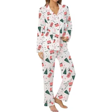 Show more Discover the ultimate sleeping experience with the LUBOT Christmas Pajamas Set, crafted from 100% premium cotton to ensure you wake up feeling refreshed and comfortable. These pajamas are designed not only for style but also for practicality, making them the perfect addition to your festive wardrobe. With a unique Christmas-themed design, you'll radiate holiday cheer every time you slip them on. The long sleeve button-down top features a convenient left chest pocket, while the simple notch collar offers a trendy touch. The elastic waistband and adjustable drawstring provide a perfect fit, so you can enjoy lounging or sleeping without any constriction. Lightweight yet warm, these pajamas strike the ideal balance for cozy winter nights.