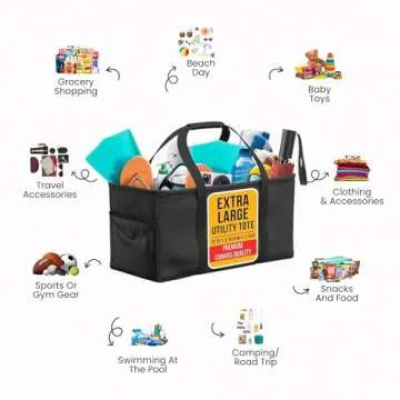 Lucazzi Extra Large Utility Tote Bag - Oversized Collapsible Large Beach Bag, Great for Pool with Sturdy Frame, Extra Side Pockets and Tons of Storage