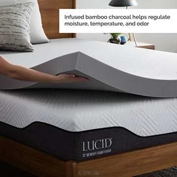 Lucid 4 Inch Mattress Topper Twin – Memory Foam – Bamboo Charcoal Infusion – Cooling Ventilation – Hypoallergenic – CertiPur Certified Foam
