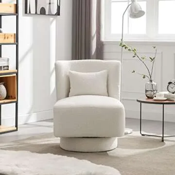 LUCKHAO Swivel Barrel Chair Set of 2,Comfy Teddy Round Swivel Boucle Chair,Modern 360 Degree Swivel Accent Single Sofa Chairs for Nursery Living Room Bedroom Office Lounge(Ivory*2)