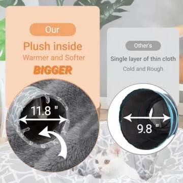 Show more Introducing a delightful playtime experience for your furry friends – this superior quality cat tunnel! Made with a soft flannel inner lining and a robust waterproof Oxford cloth outer layer, this tunnel is built to withstand the enthusiasm of your beloved pets. Its generous size offers ample room for larger cats—like Maine Coons and other big breeds—to have a fun time turning around and playing without feeling cramped.