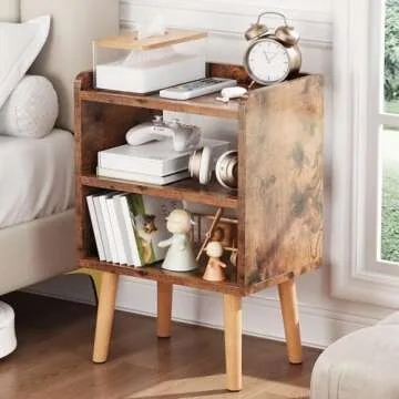 LUCKNOCK Night Stand, Modern Bedside Tables, Mid Century Nightstands with Open Storage Shelf, Wood Bedside Table, Small Night Stands for Bedroom, 3-Tier Night Table, Rustic Brown.