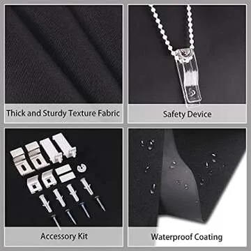 LUCKUP 100% Blackout Roller Shades Blind, Window Blinds with Waterproof Fabric, Thermal Insulated UV Protection for Bedrooms, Living Room, Bathroom, The Office, Easy to Install, 37" W x 79" L(Black)