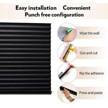 LUCKUP 2 Pack Cordless Blackout Pleated Fabric Shade,Easy to Cut and Install, with 4 Clips (48"x72" - 2 Pack, Black)