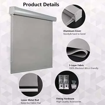 LUCKUP Blackout Roller Shades Window Blinds with Valance Cover Waterproof UV Protection Privacy Thermal Insulated Fabric for Bedroom Bathroom Patio Door and Office Easy Install (30" W x 72" H-Grey)