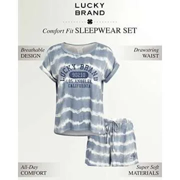 Show moreIntroducing the **Lucky Brand Women's Pajama Set**, a perfect blend of style and comfort designed for those warm summer nights. Crafted with breathable, lightweight materials, this pajama set keeps you cool while offering a cozy feeling, making it an essential addition to your sleepwear collection. The set includes a playful short-sleeve T-shirt with a delightful color palette and comfy shorts that feature an elastic waistband for ease of wear. Its chic roll sleeves enhance the design, embodying a relaxed vibe while ensuring durability. Available in a range of sizes from S to XL and showcasing an attractive Ocean Tie Dye variant, this pajama set promises a fresh and modern look, perfect for lounging or unwinding after a long day. Slip into blissful comfort with Lucky Brand and enjoy quality rest every night.