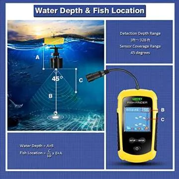 LUCKY Kayak Portable Fish Depth Finder Water Handheld Fish Finder Sonar Castable Kayak Boat Fishfinder Transducer Fishing LCD Display FFC1108