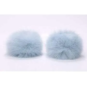 Lucky Leaf Women Winter Wrist Warmers Faux Fox Fur Soft Cuffs Band Ring for Cold Weather (C1-Light Blue)
