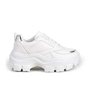 Show more Step up your style game with the LUCKY STEP Women 90S Chunky Platform Reflective Sneakers, designed for those who seek a perfect blend of comfort, function, and flair. Sporting a unique white hologram finish that captures light in stunning ways, these casual lace-up sneakers are a must-have for anyone looking to make a fashion statement while staying comfortable. With a heel height of approximately 2.36 inches, they provide just the right amount of lift, making them perfect for a range of activities including walking, shopping, or partying the night away.<\/p>