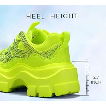 LUCKY STEP Women Chunky Platform Dad Colorblock White Neon Green Fuchsia Hologram Silver Casual Lace-Up Walking Sneakers