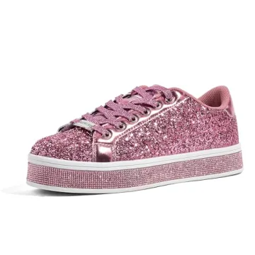Show more Introducing the LUCKY STEP Women's Platform Glitter Sneakers, where elegance meets everyday comfort. These stylish platform sneakers are not just shoes; they are a celebration of fun and glamour with their eye-catching glitter design! Perfectly suited for both casual outings and dressy occasions, these sneakers will have you turning heads wherever you go. Each pair is crafted with a sparkling glitter upper that adds a dazzling touch, while the sturdy non-slip TPR outsole gives you the confidence to stride comfortably whether you’re at a summer wedding or a vibrant evening party. Experience a blend of fashion and practicality that keeps you looking great without sacrificing comfort.