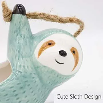 LUCKYBUNNY Cute Sloth Hanging Planters Ceramic Flower Pot Plant Holder for Succulent,Cactus, Air Plants, Herbs Indoor and Outdoor Decor (Blue)