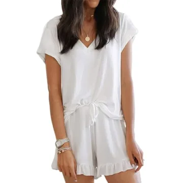 LuckyMore Lounge Sets for Women 2 Piece Outfits Casaul Sleepwear Pjs Shorts Pajamas Set White L