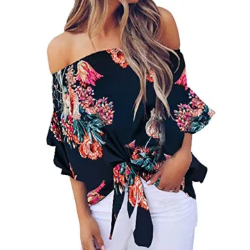 Show moreIntroducing the LuckyMore Spring Tops for Women Off The Shoulder Tie Front Boho Peasant Blouses, a chic and versatile addition to your wardrobe. Crafted from 100% soft, lightweight polyester, this blouse ensures all-day comfort while flaunting a stylish breezy look. The unique off-the-shoulder design offers a romantic vibe that's perfect for both casual outings and dressy occasions. With its tie front feature, you can create a flattering silhouette that accentuates your figure beautifully, no matter the style of pants or skirts you choose to pair it with.