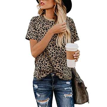 LuckyMore Women's Casual Short Sleeve Cheetah Print Summer Tops Blouses Basic Tee Shirt Leopard01 L