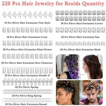 Lucomb 220 Pcs Silver Hair Jewelry for Braids, Loc Jewelry for Hair Dreadlock, Hair Charms for Women, Metal Silver Braids Rings Cuffs Clips for Dreadlock Accessories Hair Braids Jewelry Decorations