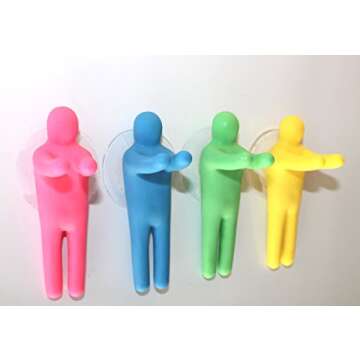 Lucore Colorful People Toothbrush Holder And Utility Suction Hook, Set of 4 Pc