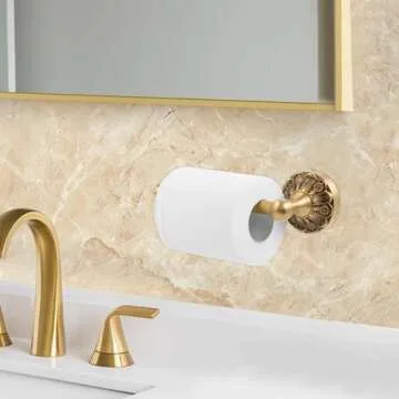 Lucyound Antique Brass Toilet Paper Holder, Bathroom Tissue Roll Holder Wall Mount, Vintage Gold Decorative Bathroom Accessories, Petal-Relief Series