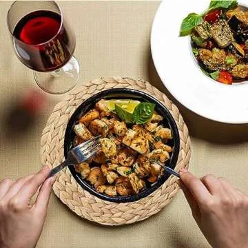 LUDAMI Woven Placemats Set of 6-100% Water Hyacinth Round Placemats - Non-Slip and Heat Resistant Rattan Placemats - Perfect Mats for Indoor Outdoor.