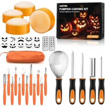 Luditek 17 PCS Pumpkin Carving Kit with Stencils & Lights