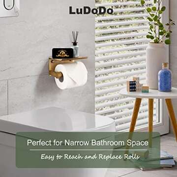 LuDoDo Gold Toilet Paper Holder with Phone Shelf,Toilet Paper Roll Holder with Storage Shelf,Wall Mounted for Bathroom (Antique Brass)