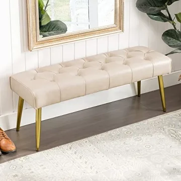 Show moreIntroducing the LUE BONA Button-Tufted Ottoman Bench, a versatile and stylish addition to any home. Measuring at 44.5" L x 15.25" W x 17.75" H, this stunning faux leather upholstered bench is perfect for complementing your bedroom, living room, or entrance area. Designed to comfortably accommodate up to three people with a maximum weight capacity of 300 lbs, this bench is not only functional but also a chic décor piece. Crafted with a focus on mid-century elegance and modern durability, it features a beautiful tufted design, soft muted colors, and a sturdy base tailored for long-lasting use.