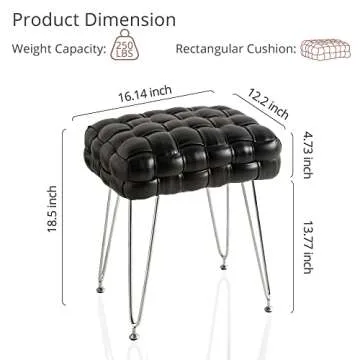 LUE BONA Faux Leather Vanity Stool, Upholstered Make up Bench, Rectangle Ottoman Foot Stool, Vanity Chair Tufted Footrest Stool Makeup Stool with Silver Chrome Legs for Living Room, Bedroom, Black