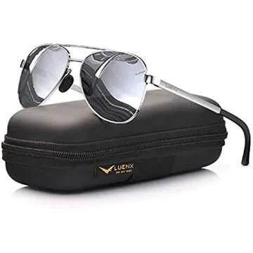 Show moreIntroducing the LUENX Men Women Aviator Sunglasses, the perfect blend of style, functionality, and affordability. Designed for outdoor enthusiasts and fashion lovers alike, these polarized sunglasses feature UV400 protection to keep your eyes safe from harmful rays. With a remarkable 99% polarization, they effectively cut through bright light, providing crystal-clear vision while minimizing glare. Crafted with a chic silver mirrored lens and a sturdy metal frame, these aviators complement a variety of face shapes, ensuring you look your best no matter the occasion.