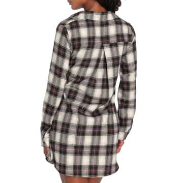 LuFeng Women's Casual Plaid Long Sleeve Lapel V Neck Tie Waist Front Button Down Mini Tunic Shirt Dress Coffee