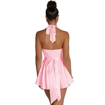 Show moreIntroducing the LuFeng Women's Sexy Sleeveless Halter Deep V Neck Backless Tie Back Waist Flowy Drape Satin Cocktail Mini Dress—a fabulous fusion of style, elegance, and comfort that transforms any occasion into a memorable event. Crafted with meticulous attention to detail, this alluring dress is made from a premium blend of 94% Polyester and 6% Spandex, ensuring a lightweight, soft, and skin-friendly experience. Its unique halter neck design highlights your shoulders while the plunging neckline adds a touch of glamour, making it a statement piece for confident women.