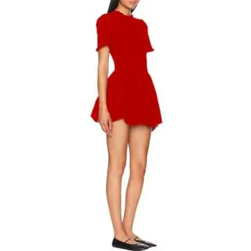 LuFeng Womens Short Sleeve Cut Out Bubble Tank Dress Mock Neck Ruffle Y2k Mini Bodycon Party Club Dresses Red