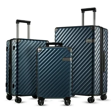 Show more Introducing the LUGGEX 3 Piece Luggage Sets—your ultimate travel companion designed for comfort, durability, and style! Crafted from 100% environmentally friendly Polycarbonate, these hard-shell suitcases offer a blend of superb flexural strength and lightweight convenience. Each set includes three sizes: 20", 24", and 28", perfect for any travel need—from weekend getaways to extended vacations. The reinforced aluminum corner protectors ensure that your belongings stay safe during rough transportation, giving you peace of mind as you traverse the globe.