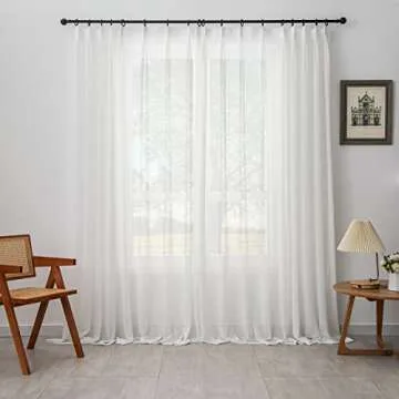 Show moreIntroducing the LUGOTAL Pinch Pleated Drapes - the perfect blend of elegance and functionality for your living space! Measuring 52 inches wide by 108 inches long, these off-white sheer curtains are crafted to enhance your home decor while offering practical light-filtering properties. Ideal for both modern and traditional interiors, they create a warm ambiance and seamlessly complement your bedroom or living room. Each panel comes with 11 adjustable hooks, making installation simple on a variety of curtain poles or tracks.