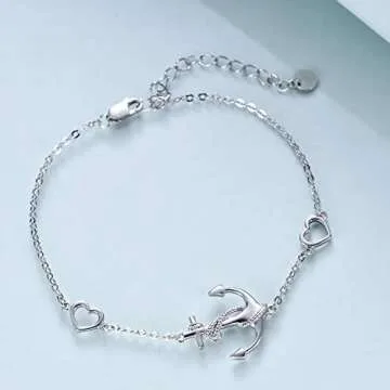 LUHE Anchor Bracelet - Sterling Silver Nautical Jewelry Gift for Women