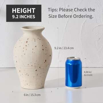 LUKA 9.2 inch Terracotta Vase, Ceramic Rustic Farmhouse Vase,Housewarming/Christmas Decoration Vases for Home Decor, Table, Living Room, Shelf,Mantel Decoration(White)