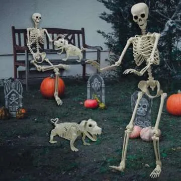 Show moreGet ready to transform your Halloween décor with the incredible LUKBERA Halloween Skeleton Decorations set! This captivating duo includes a stunning life-sized human skeleton standing at an impressive 5.4FT tall and an adorable dog skeleton, perfect for adding a whimsical touch to your spooky setup. Designed with high-quality thick plastic, these skeletons strike the perfect balance between being lightweight and highly durable, ensuring they withstand the excitement of any Halloween festivities. Plus, they're non-toxic, making them safe for families with children or pets.