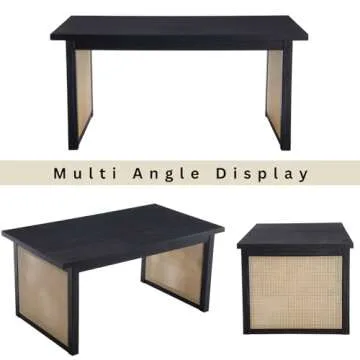 LukeAlon Solid Wood Dining Tabel for 4 to 6 People, Mid Century Modern Rattan Double Pedestal Rustic 63" Long Solid Wood Kitchen Table Farmhouse Style Retangular Dining Room Tabel, Black