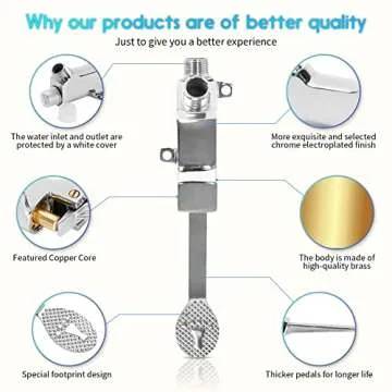 The valve comes with a 1/2-inch NPT inlet, making it compatible with most plumbing systems. This efficiently designed foot pedal allows for effortless operation, encouraging frequent handwashing in both residential and commercial settings. Ideal for restaurants, medical offices, or kitchens, this valve helps keep sanitation standards high without requiring the use of hands, thus promoting cleanliness and hygiene in every environment.