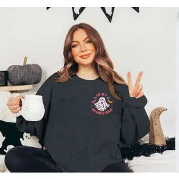 LUKYCILD Halloween Sweatshirt Women In My Spooky Era Sweatshirts Cute Ghost Shirt Spooky Season Long Sleeve Shirt Gray