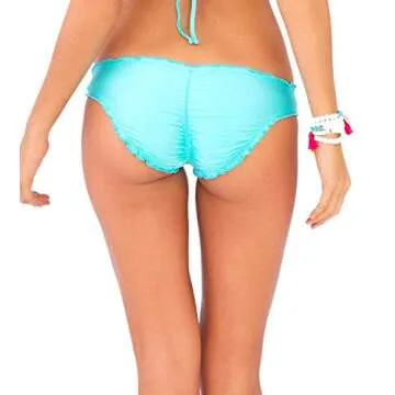 Luli Fama Women's Cosita Buena Wavy Full Ruched-Back Bikini Bottom, Aqua Marine, Medium