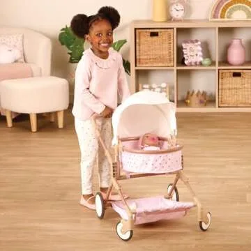 Show more Introducing the LullaBaby push-and-pull double doll stroller, designed to bring joy and imaginative play for your little ones! This adorable stroller features a delightful pale pink color adorned with a golden star pattern, perfect for taking twin baby dolls on stylish adventures. Crafted by LullaBaby, a brand renowned for its quality and creativity in children's toys, this double stroller is not just a toy; it’s a companion for nurturing playtime.