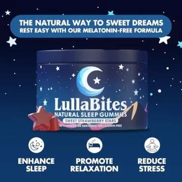 LullaBites Gummies - Made in The USA - Natural Sweet Strawberry Stars Flavor - 30 Servings - Sugar-Free - Vegan - Halal
