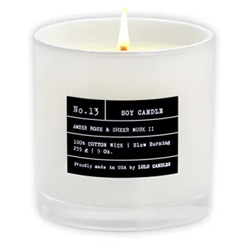 Show more Indulge your senses with the stunning Lulu Candles | Amber, Rose & Sheer Musk II, a luxurious scented soy jar candle that transforms any space into a fragrant haven. Hand poured in the USA, each 9 oz. candle features a unique blend of premium essential oil fragrances, designed to create an unforgettable aroma that lingers gracefully in your home. The innovative design of the jar not only encapsulates the allure of the scent but also serves as a chic decorative piece when not in use, making it an exquisite addition to any decor.