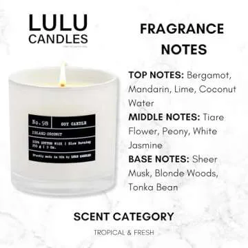 Lulu Candles | Island Coconut | Luxury Scented Soy Jar Candle | Hand Poured in The USA | Highly Scented & Long Lasting (9 Oz.)