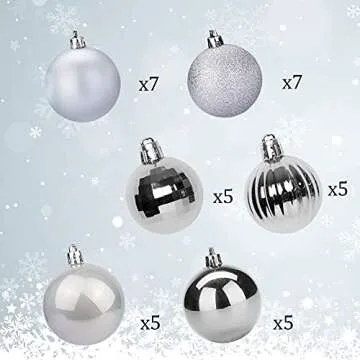 Show moreTransform your holiday decor with the exquisite Lulu Home Christmas Ball Ornaments! This stunning assortment of 34 shatterproof ornaments, sized at a delightful 1.57" in diameter, features an array of surfaces including matte, glitter, shiny, mirrored, and a unique pumpkin-shaped design. Crafted from high-quality plastic and finished in eye-catching silver and other vibrant colors, these ornaments provide an elegant and festive touch, ensuring they stand out on your Christmas tree and throughout your home.