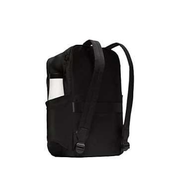 The exterior features a padded pocket that can comfortably fit a 16'' laptop, ensuring your tech is safe and secure. An easy-access exterior pocket is perfect for essentials like your phone and keys, while the water bottle pocket allows you to stay hydrated on the move. Inside, the strategically designed pockets keep your belongings organized, so you can focus on your day, not your bag.